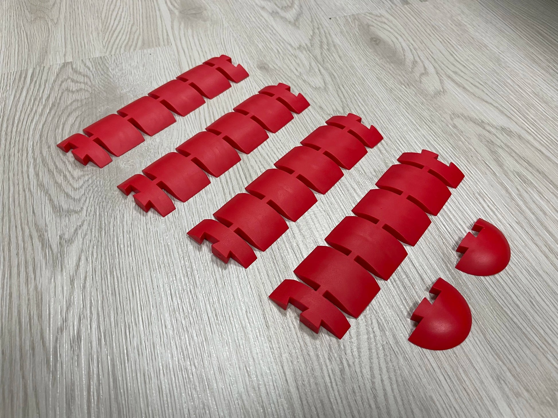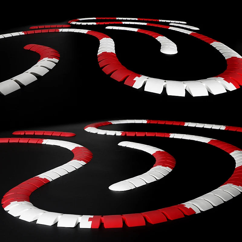 Define your track boundaries on the desk or on the floor. These sausage kerbs are aggressive, jagged barriers and will slow the car significantly or will send it off the trajectory.